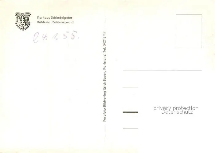 Buehlertal Kurhaus Schindelpeter Buehlertal postalisch nicht gelaufen 1955 Erhaltung siehe scans [WerneD78] WernPID7