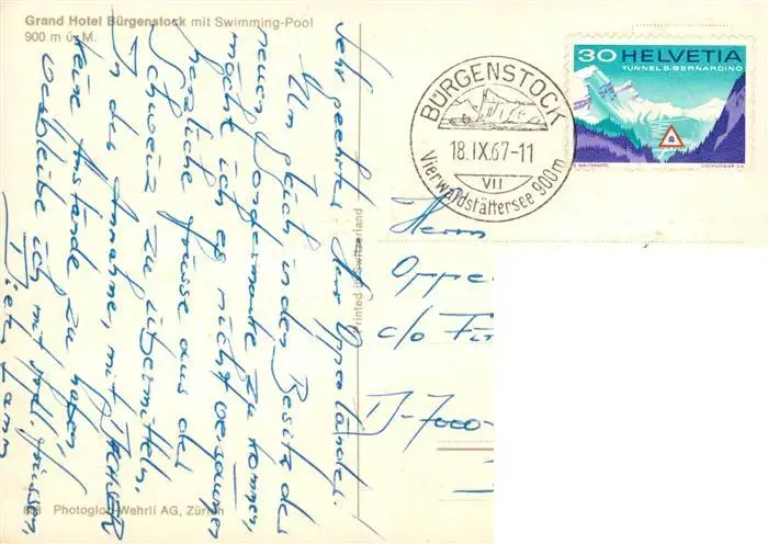 Buergenstock_Vierwaldstaettersee_NW Grand Hotel Buergenstock Fliegeraufnahme postalisch gelaufen 1967 Erhaltung siehe scans [WerneD78] WernPID7