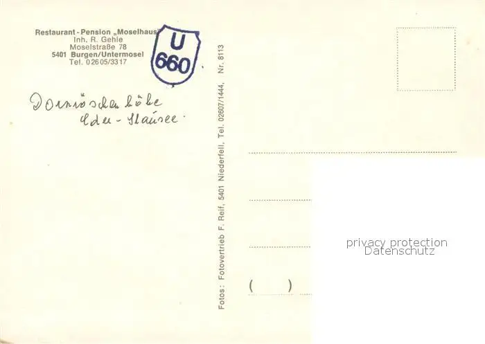 Burgen_Mosel Restaurant Pension Moselhaus Gaststube Burgblick Edersee Burgen Mosel postalisch nicht gelaufen nach 1965 Erhaltung siehe scans [WerneD78] WernPID7
