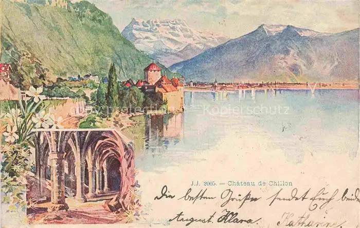 14058530 CHILLON Chateau de Montreux VD Vue d'ensemble postalisch gelaufen Erhaltung siehe scans [WerneD78] alte Postkarte Wern Katcode 11470240845874