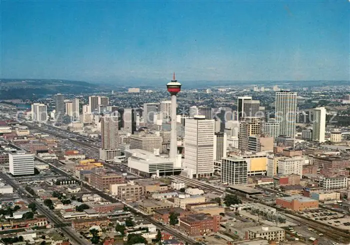 AK / Ansichtskarte Calgary Aerial view of downtown Calgary depicting the Calgary Tower as a landmark Calgary