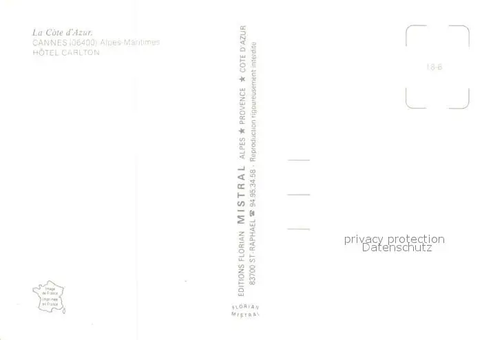 Cannes_Alpes-Maritimes Hotel Carlton Cannes Alpes-Maritimes postalisch nicht gelaufen nach 1965 Erhaltung siehe scans [KathaD81] Kathoren