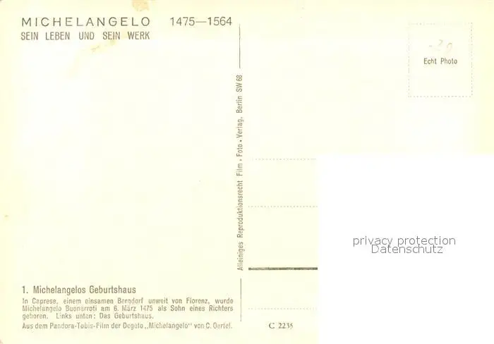Caprese_Michelangelo Geburtshaus Caprese_Michelangelo postalisch nicht gelaufen nach 1965 Erhaltung siehe scans [KathaD81] Kathoren