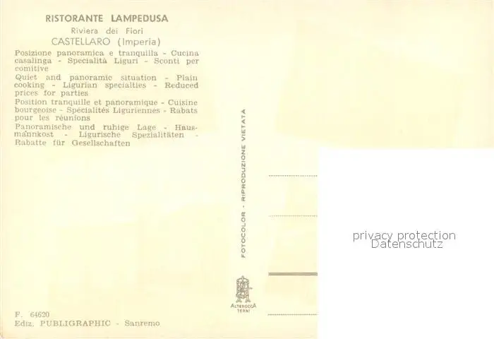 Castellaro Ristorante Lampedusa Panorama postalisch nicht gelaufen 1921-1965 Erhaltung siehe scans [FriedD77] Frierer