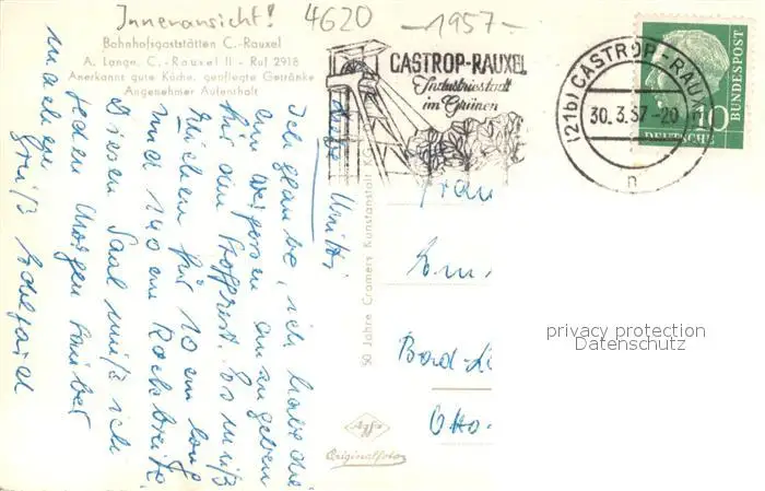 Castrop-Rauxel Bahnhofsgaststaette Castrop-Rauxel postalisch gelaufen 1957 Erhaltung siehe scans [WerneD78] WernPID7