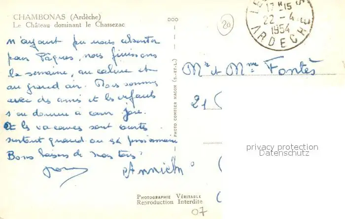 Chambonas Le Chateau dominant le Chassezac Chambonas postalisch gelaufen 1954 Erhaltung siehe scans [WerneD78] WernPID7