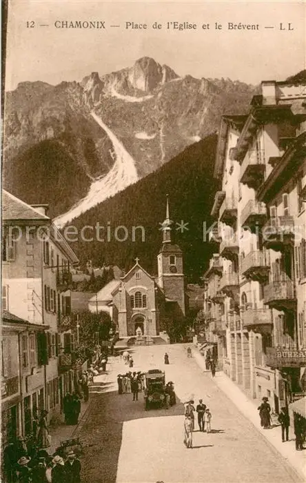 Chamonix Place de l'Eglise et le Brévent Alpes Chamonix postalisch nicht gelaufen 1921-1965 Erhaltung siehe scans [FriedD77] Frierer