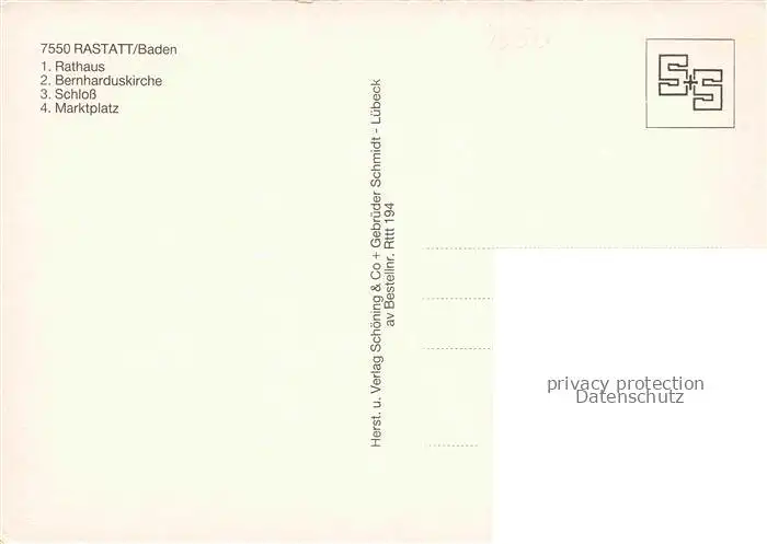 alte Postkarte Chronik-AK Rastatt Baden Rathaus Schloss postalisch gelaufen Erhaltung siehe scans [SanaeD93]