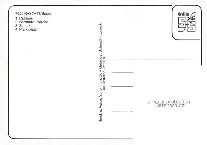 alte Postkarte Chronik-AK Rastatt Baden Rathaus Schloss postalisch gelaufen Erhaltung siehe scans [SanaeD93]