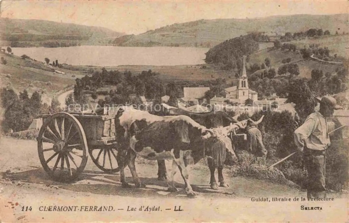 carte postale Clermont-Ferrand 63 Vue panoramique Lac d'Aydat Ochsenkarren postalisch gelaufen Erhaltung siehe scans [FriedD77]