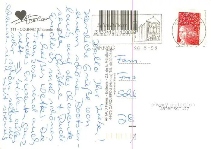 Cognac_16_Charente Vues d ensemble Monument postalisch gelaufen 1998 Erhaltung siehe scans [FriedD77] Frierer
