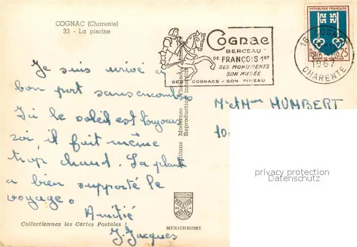 Cognac_Charente La piscine postalisch gelaufen 1967 Erhaltung siehe scans [FriedD77] Frierer