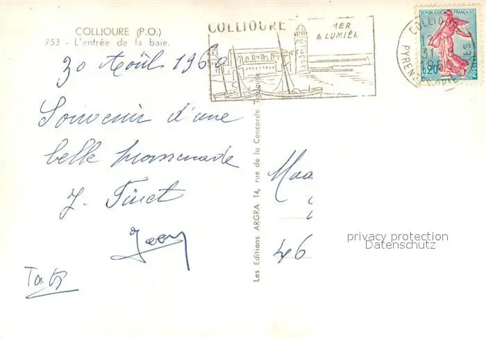 Collioure Collioure postalisch gelaufen 1960 Erhaltung siehe scans [LiesaD40] LiesID40