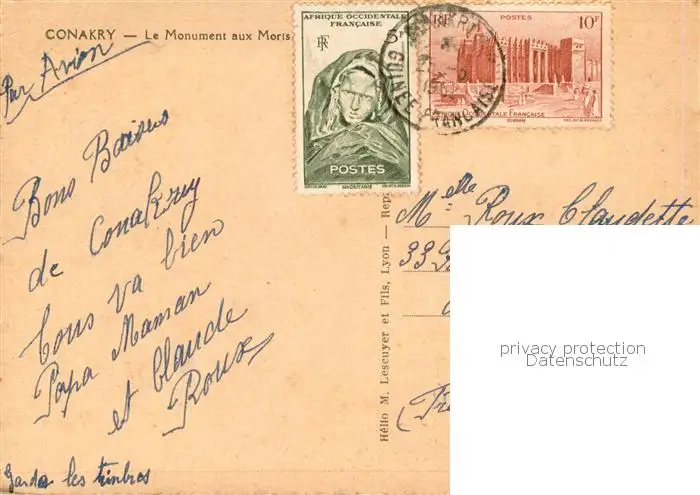 Conakry_Konakry_Guinea Le Monument aux Morts postalisch gelaufen 1921-1965 Erhaltung siehe scans [FriedD77] Frierer