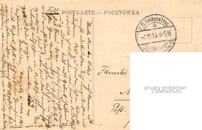 Czestochowa_Schlesien Kategorie Alte Ansichtskarten Postkarten bx80744 Czestochowa_Schlesien III. Aleja Czestochowa_Schlesien postalisch gelaufen 1914 Feldpostexpedition (Stempel) Erhaltung siehe scans [KathaD81]
