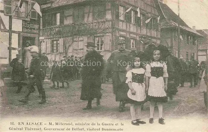 DANNEMARIE__Dammerkirch_Alsace_68_Haut-Rhin M Millerand ministre de la Guerre et le General Tenvenet Gouverneur de Belfort visitent Dannemarie postalisch nicht gelaufen 1915 Erhaltung siehe scans [FriedD77] Frierer