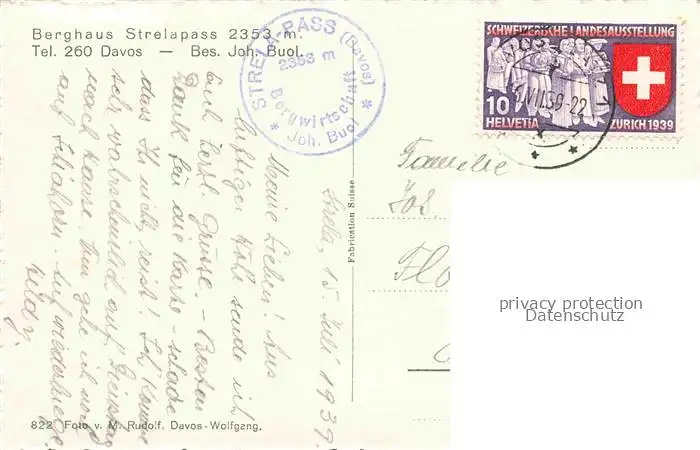 14070587 DAVOS GR Berghaus Strelapass mit Weissfluh postalisch gelaufen Erhaltung siehe scans [WerneD78] alte Postkarte Wern Katcode 11470100350342