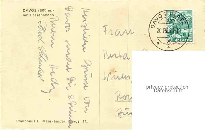 alte Postkarte DAVOS GR mit Parsennbahn postalisch gelaufen Erhaltung siehe scans [WerneD78]