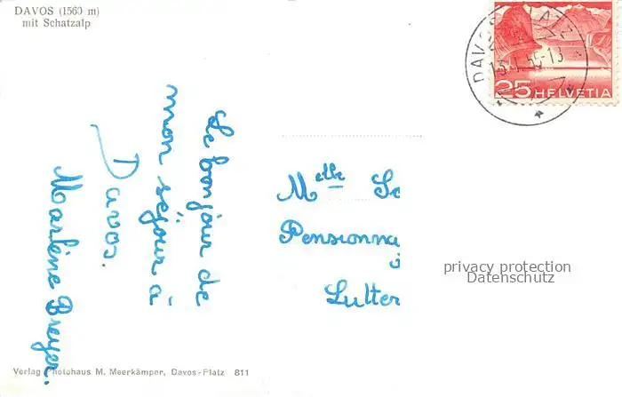 alte Postkarte DAVOS GR mit Schatzalp postalisch gelaufen Erhaltung siehe scans [WerneD78]
