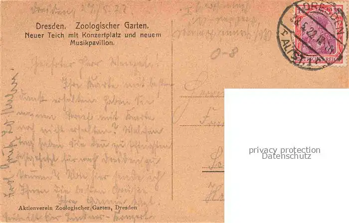 alte Postkarte DRESDEN Elbe Zoologischer Garten Neuer Teich Konzertplatz Musikpavillon postalisch gelaufen Erhaltung siehe scans [FriedD77]