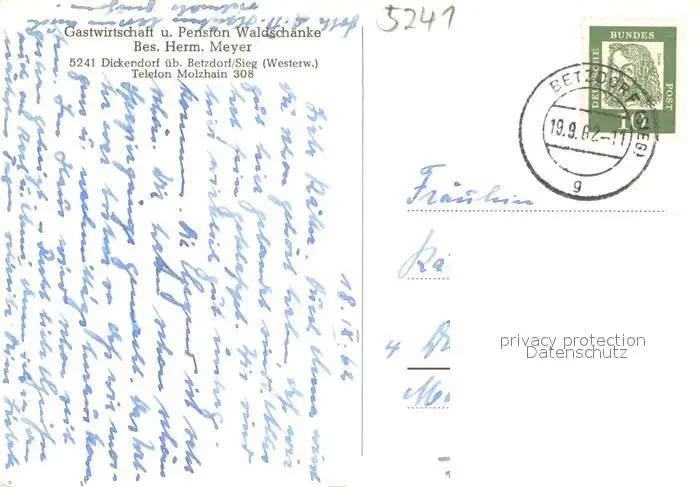 Dickendorf Gastwirtschaft Waldschaenke Innen- und Aussenansichten Dickendorf postalisch gelaufen 1962 Erhaltung siehe scans [LiesaD40] LiesID40