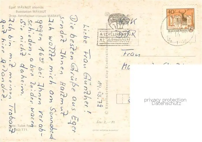 Eger__Cheb_Tschechien Busstation Mavaut postalisch gelaufen 1979 Erhaltung siehe scans [WerneD78] WernPID7