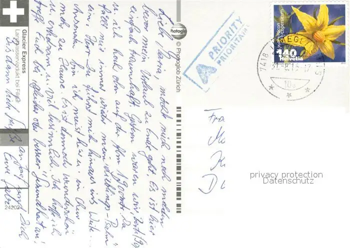 Eisenbahn Glacier-Express Landwasserviadukt Filisur Eisenbahn postalisch gelaufen 2015 Erhaltung siehe scans [PaolaD17] PaolPID1