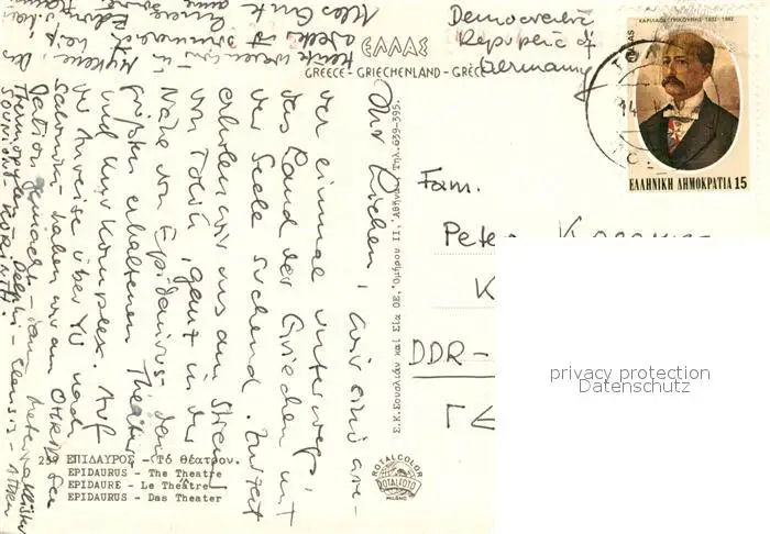 Epidauros Freilichttheater Epidauros postalisch gelaufen nach 1965 Erhaltung siehe scans [LiesaD40] LiesID40