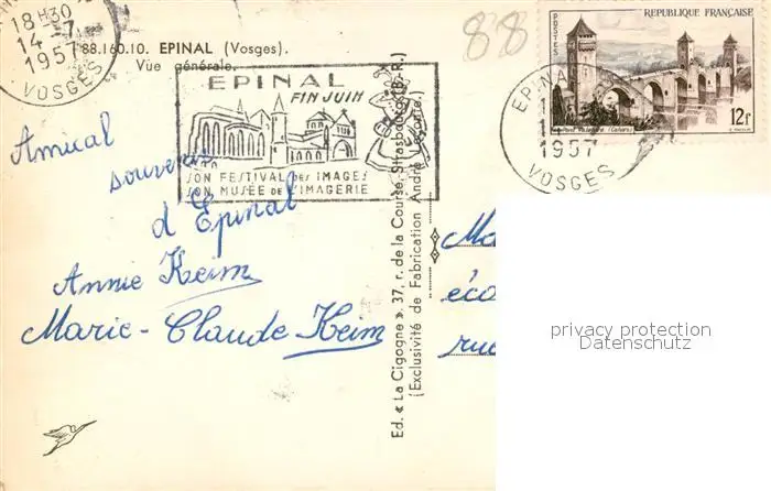 Epinal_Vosges Vue generale Epinal Vosges postalisch gelaufen 1957 Erhaltung siehe scans [WerneD78] WernPID7