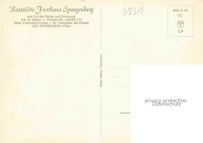 Erfenstein Raststaette Forsthaus Spangenberg postalisch nicht gelaufen Erhaltung siehe scans [FriedD77]