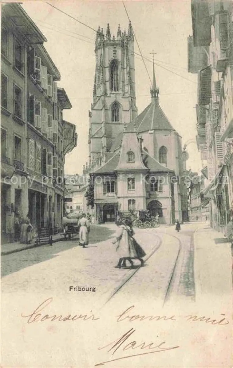 14086553 FRIBOURG FR Au centre Eglise postalisch gelaufen Erhaltung siehe scans [FriedD77] alte Postkarte Frie Katcode 11470070270252