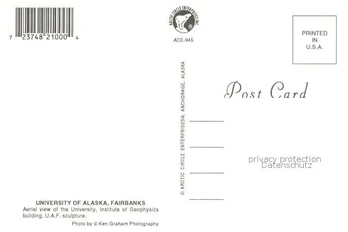 Fairbanks_Alaska University Buildings Institute of Geophysics Building aerial view postalisch nicht gelaufen nach 1965 Erhaltung siehe scans [FriedD77] Frierer