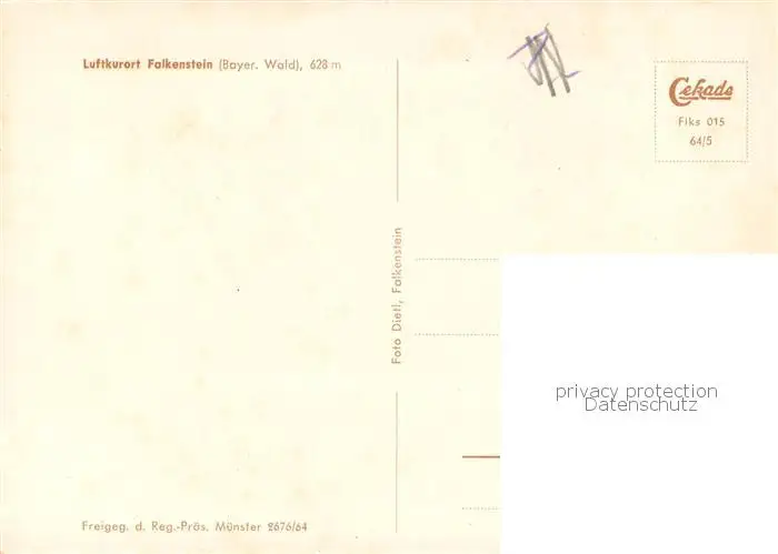 Falkenstein_Bayerischer_Wald Fliegeraufnahme postalisch nicht gelaufen nach 1965 Erhaltung siehe scans [WerneD78] WernPID7