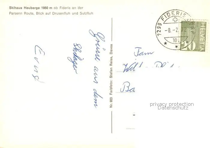 Fideris Skihaus Heuberge Fideris postalisch gelaufen 1972 Erhaltung siehe scans [NatalD47] NataID47