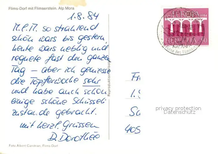 Flims_Dorf Flimserstein Alp Mora Flims_Dorf postalisch gelaufen 1984 Erhaltung siehe scans [KathaD81] Kathoren