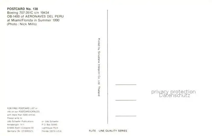 Flugzeuge_Zivil Aeronaves del Peru Boeing 707-351C c/n 19434 OB-1400 Flugzeuge Zivil postalisch nicht gelaufen 1990 Erhaltung siehe scans [PaolaD17] PaolPID1