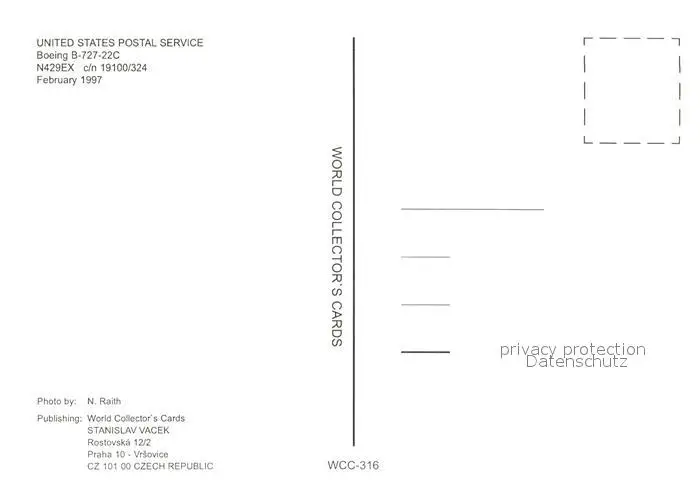Flugzeuge_Zivil United States Postal Service Boeing B-727-22C N429EX c/n 19100/324 Flugzeuge Zivil postalisch nicht gelaufen 1997 Erhaltung siehe scans [PaolaD17] PaolPID1