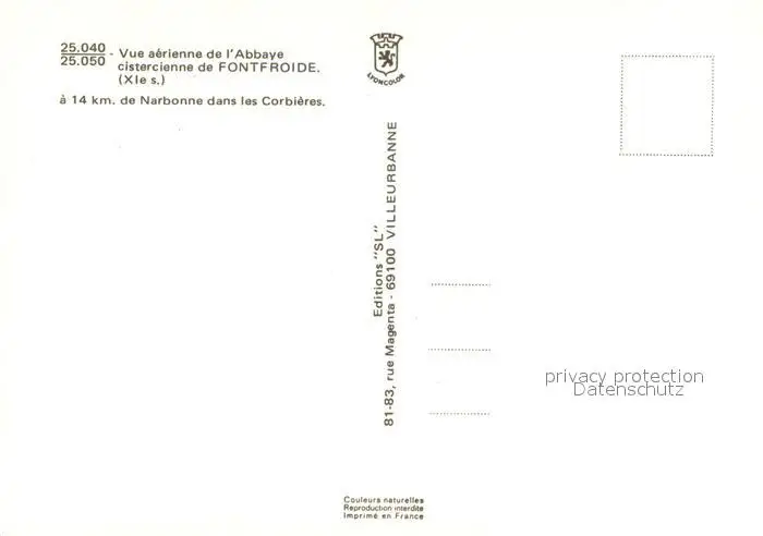 Fontfroide_Abbaye Vue aérienne de l'abbaye cistercienne Fontfroide Abbaye postalisch nicht gelaufen nach 1965 Erhaltung siehe scans [FriedD77] Frierer