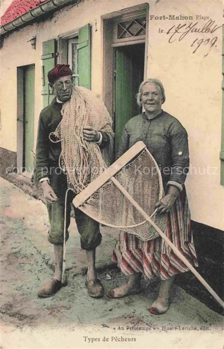 14108640 Fort-Mahon-Plage Abbeville 80 Somme Types de pêcheurs postalisch gelaufen Erhaltung siehe scans [FriedD77] alte Postkarte Frie Katcode 11170080180333
