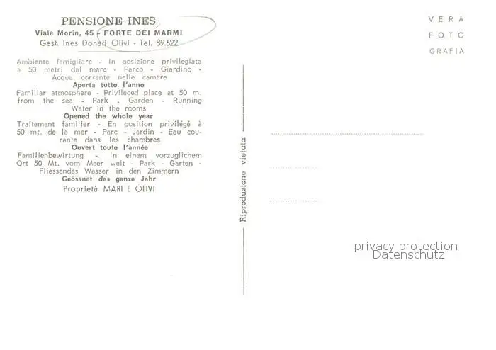 Forte_dei_Marmi_IT Pensione Ines postalisch nicht gelaufen 1921-1965 Erhaltung siehe scans [FriedD77] Frierer