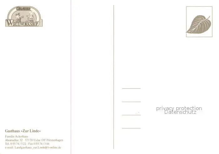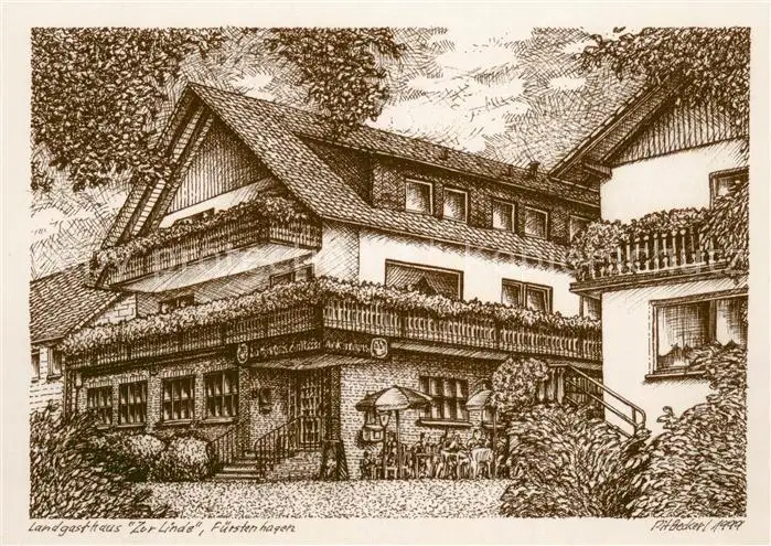 Fuerstenhagen_Weserbergland Landgasthaus Zur Linde Zeichnung Kuenstlerkarte Fuerstenhagen postalisch nicht gelaufen 1999 Erhaltung siehe scans [FriedD77] Frierer