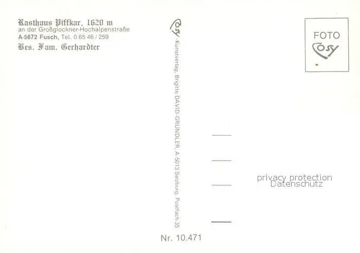 Fusch_Grossglocknerstrasse Rasthaus Piffkar Fusch postalisch nicht gelaufen nach 1965 Erhaltung siehe scans [NatalD47] NataID47