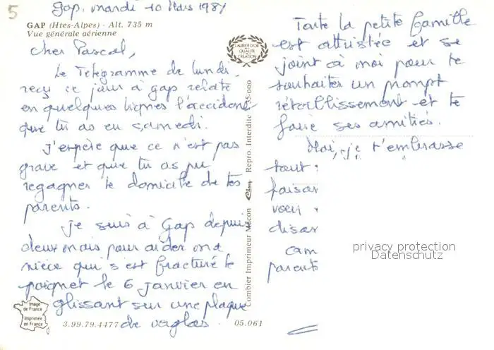 Gap_Hautes-Alpes Vue aérienne Gap_Hautes-Alpes postalisch nicht gelaufen 1987 Erhaltung siehe scans [FriedD77] Frierer