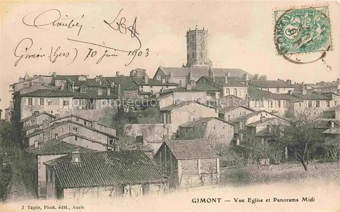 carte postale Gimont AUCH 32 Gers Vue Eglise et Panorama Midi postalisch gelaufen Erhaltung siehe scans [WerneD78]