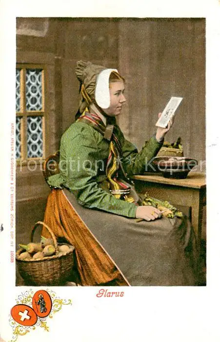 Glarus_GL Trachtenmaedchen Glarus_GL postalisch nicht gelaufen bis 1920 Erhaltung siehe scans [WerneD78] WernPID7
