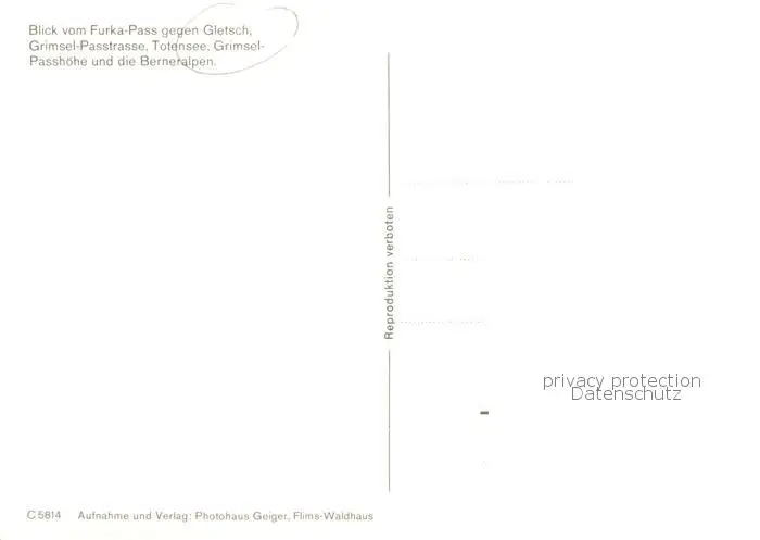 Gletsch_1784m_VS Grimsel Passstrasse Totensee Grimsel Passhoehe und Berneralpen postalisch nicht gelaufen nach 1965 Erhaltung siehe scans [WerneD78] WernPID7