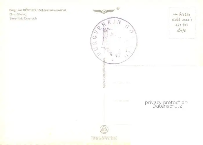 Goesting Fliegeraufnahme Burgruine Goesting Goesting postalisch nicht gelaufen nach 1965 Erhaltung siehe scans [WerneD78] WernPID7