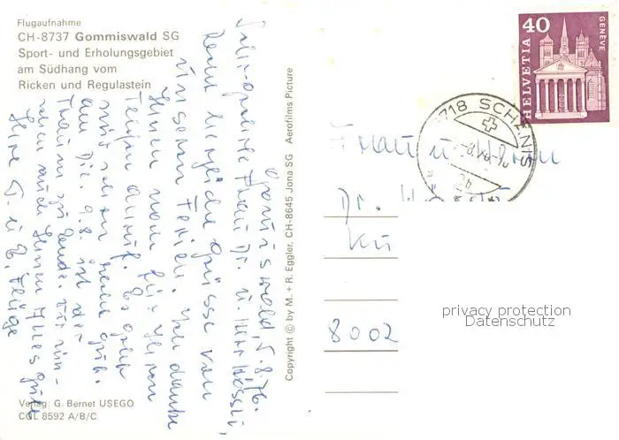 Gommiswald_SG Sport- und Erholungsgebiet Luftbild Ortsmotiv postalisch gelaufen 1976 Erhaltung siehe scans [FriedD77] Frierer