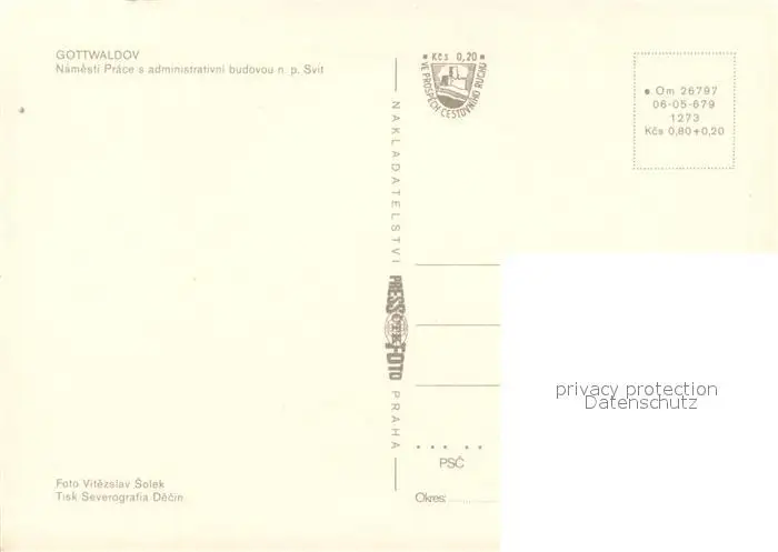 Gottwaldov_Tschechien Prace s administrativni budovou np Svit Gottwaldov Tschechien postalisch nicht gelaufen nach 1965 Erhaltung siehe scans [WerneD78] WernPID7