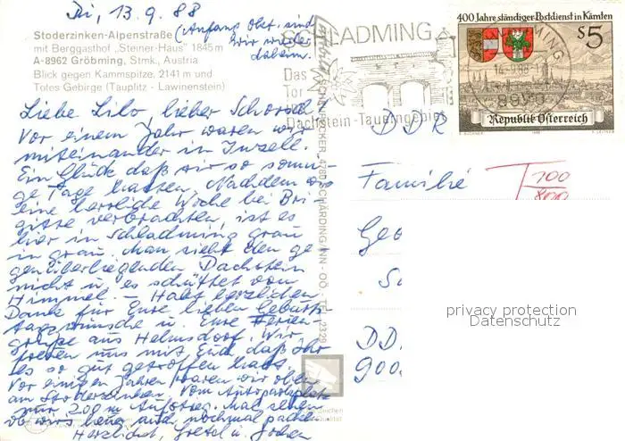 Groebming_Steiermark Stoderzinken Alpenstrasse Groebming_Steiermark postalisch gelaufen 1988 Erhaltung siehe scans [KathaD81] Kathoren